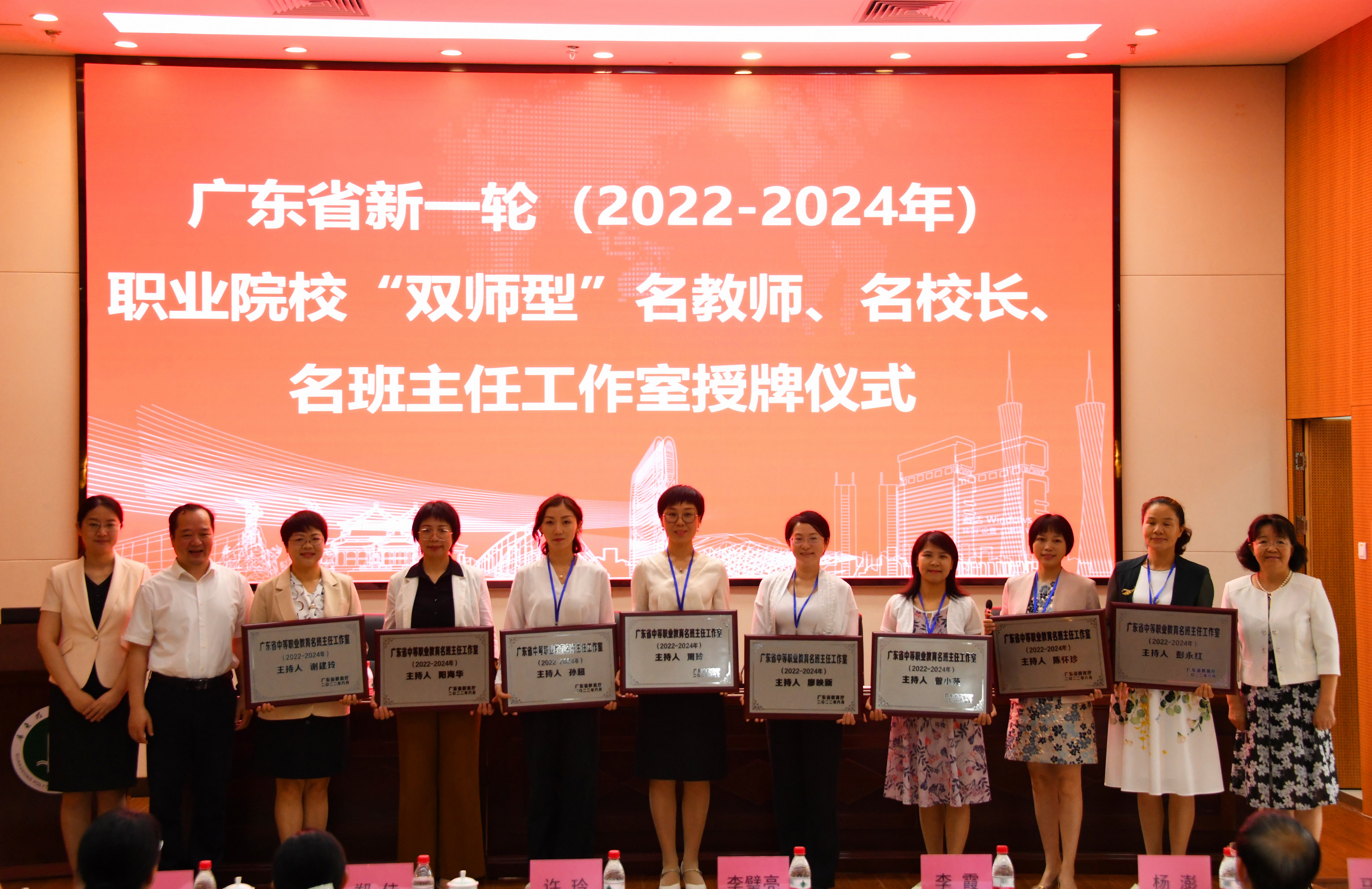 广东技术师范大学副校长许玲致欢迎词。上一轮优秀工作室主持人代表广东省外语艺术职业学院教师朴红梅、中山市第一职业技术学校校长龙卫平、广东生态工程职业学院教师李进豪分别作经验分享。佛山市教师发展中心主任舒悦和广东轻工职业技术学院副校长李荣分别代表地市教育行政部门以及高职院校发言。广州市信息技术职业学校教师薛宁海代表新一轮省工作室主持人作表态发言。活动还对38位职业教育“双师型”名教师、名校长、名班主任工作室主持人进行了授牌。
