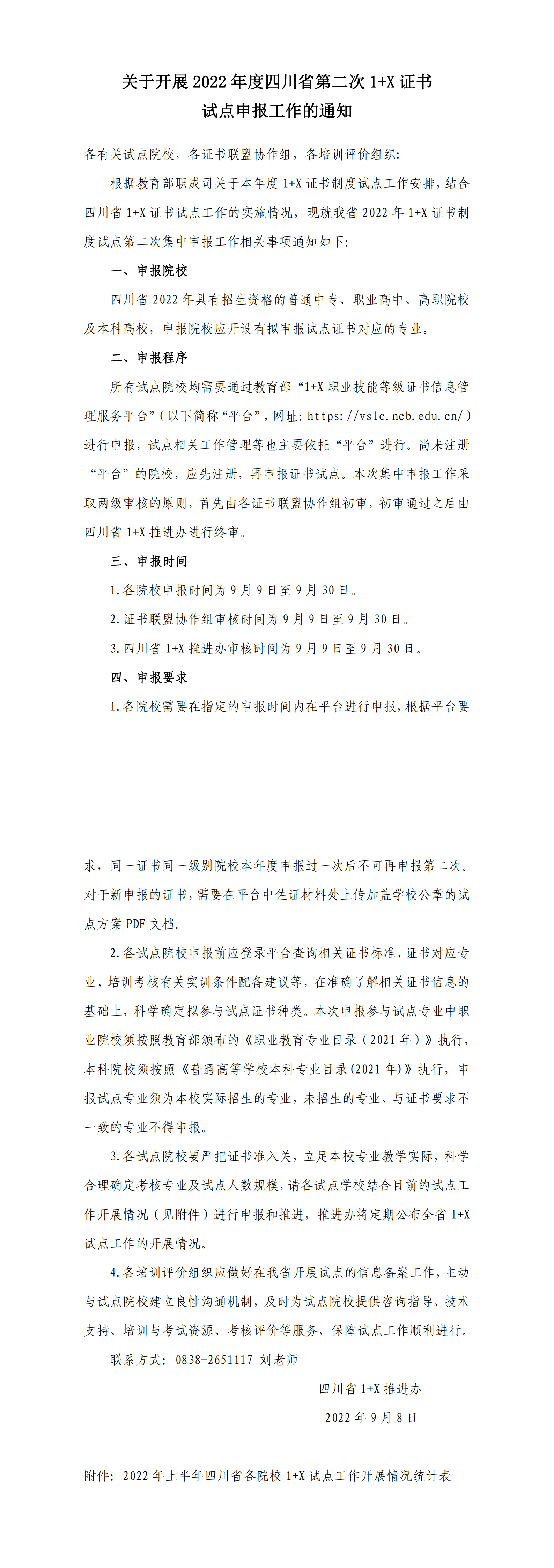 【四川省】关于开展 2022 年度四川省第二次 1+X 证书 试点申报工作的通知