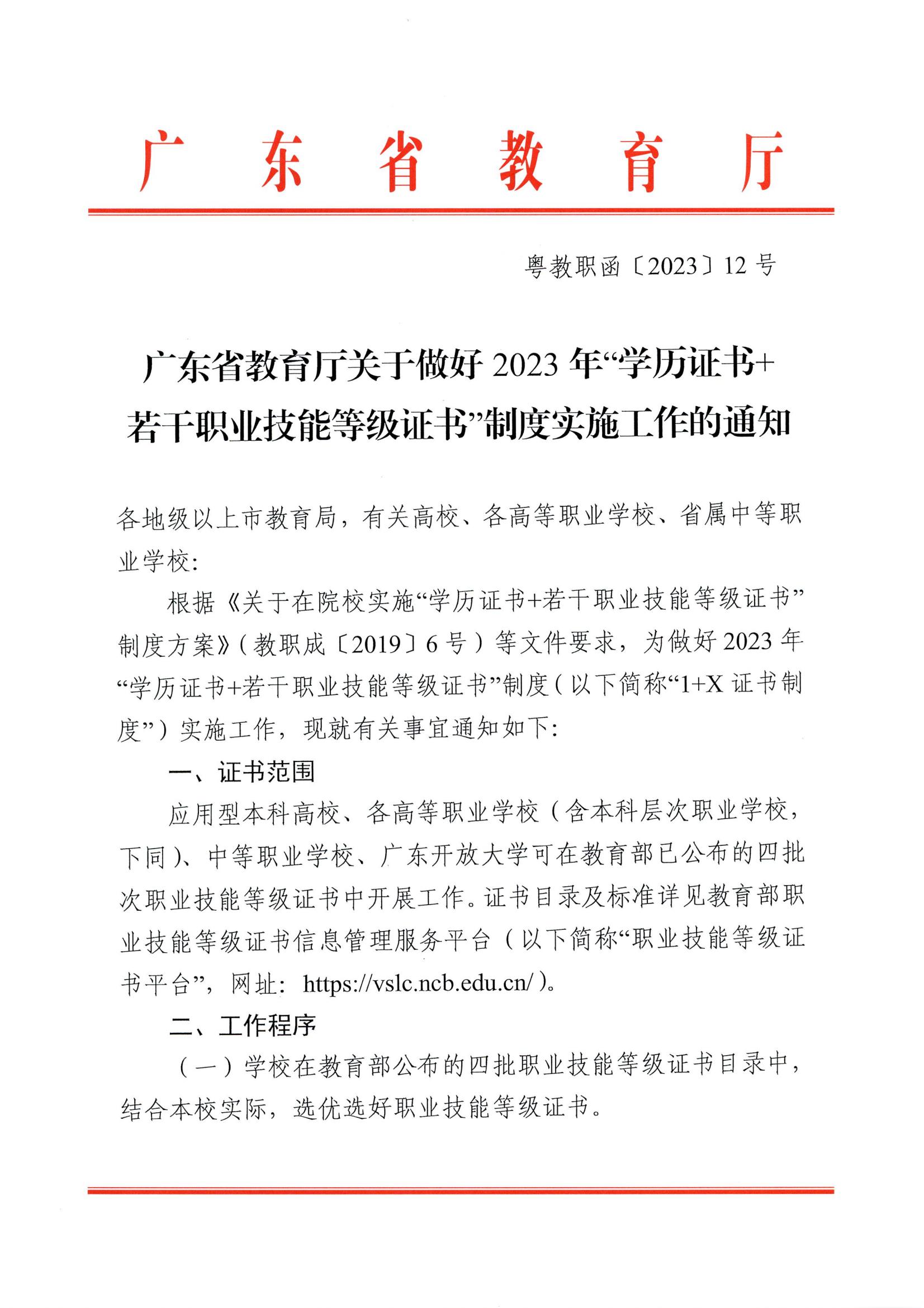 【广东省】广东省教育厅关于做好2023年“学历证书+若干职业技能等级证书”制度实施工作的通知