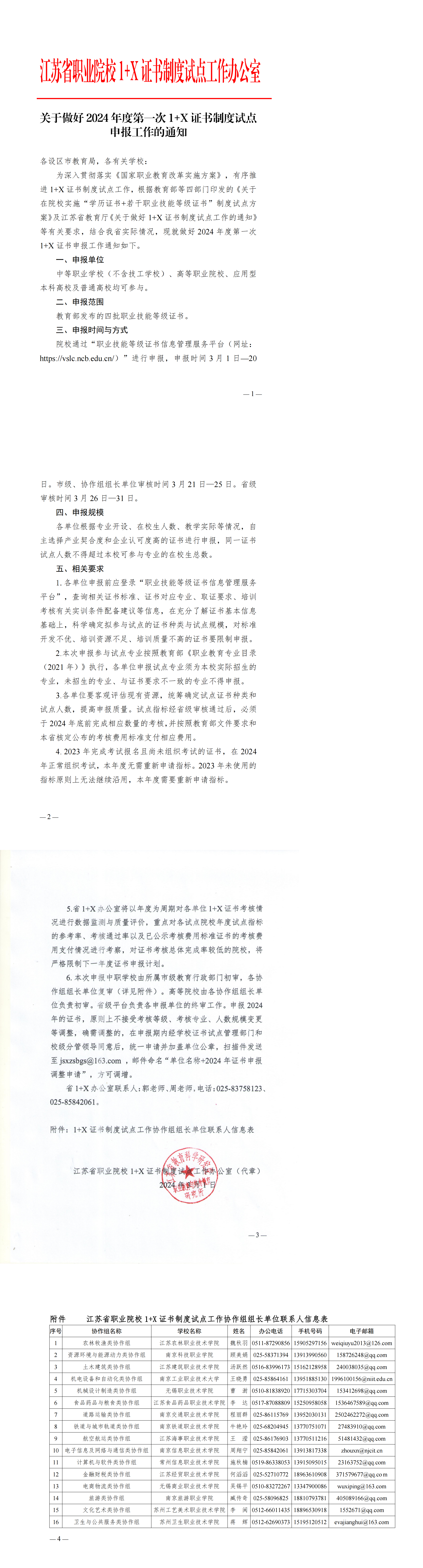 【江苏省】关于做好2024年度第一次1+X证书制度试点申报工作的通知
