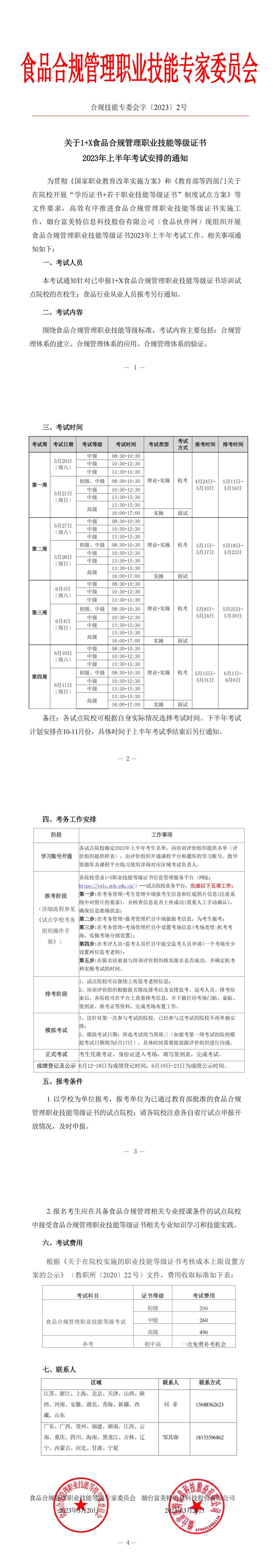 关于1+X食品合规管理职业技能等级证书2023年上半年考试安排的通知