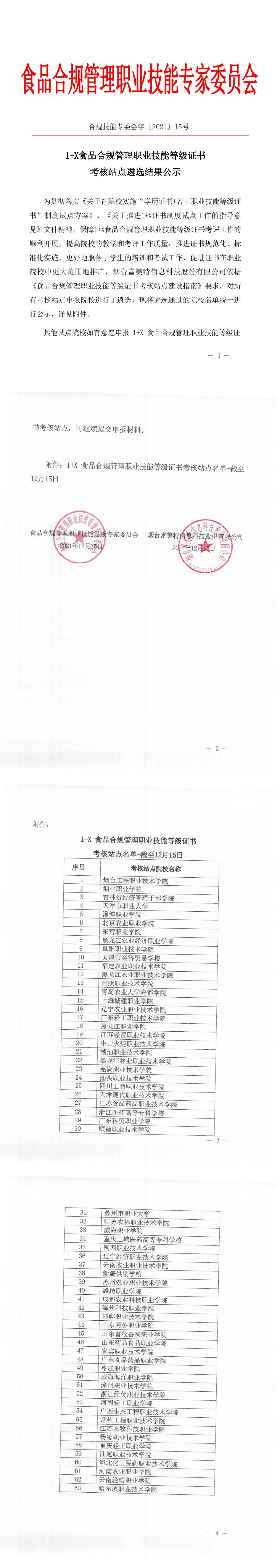 1+X食品合规管理职业技能等级证书考核站点遴选结果公示-截至12月15日