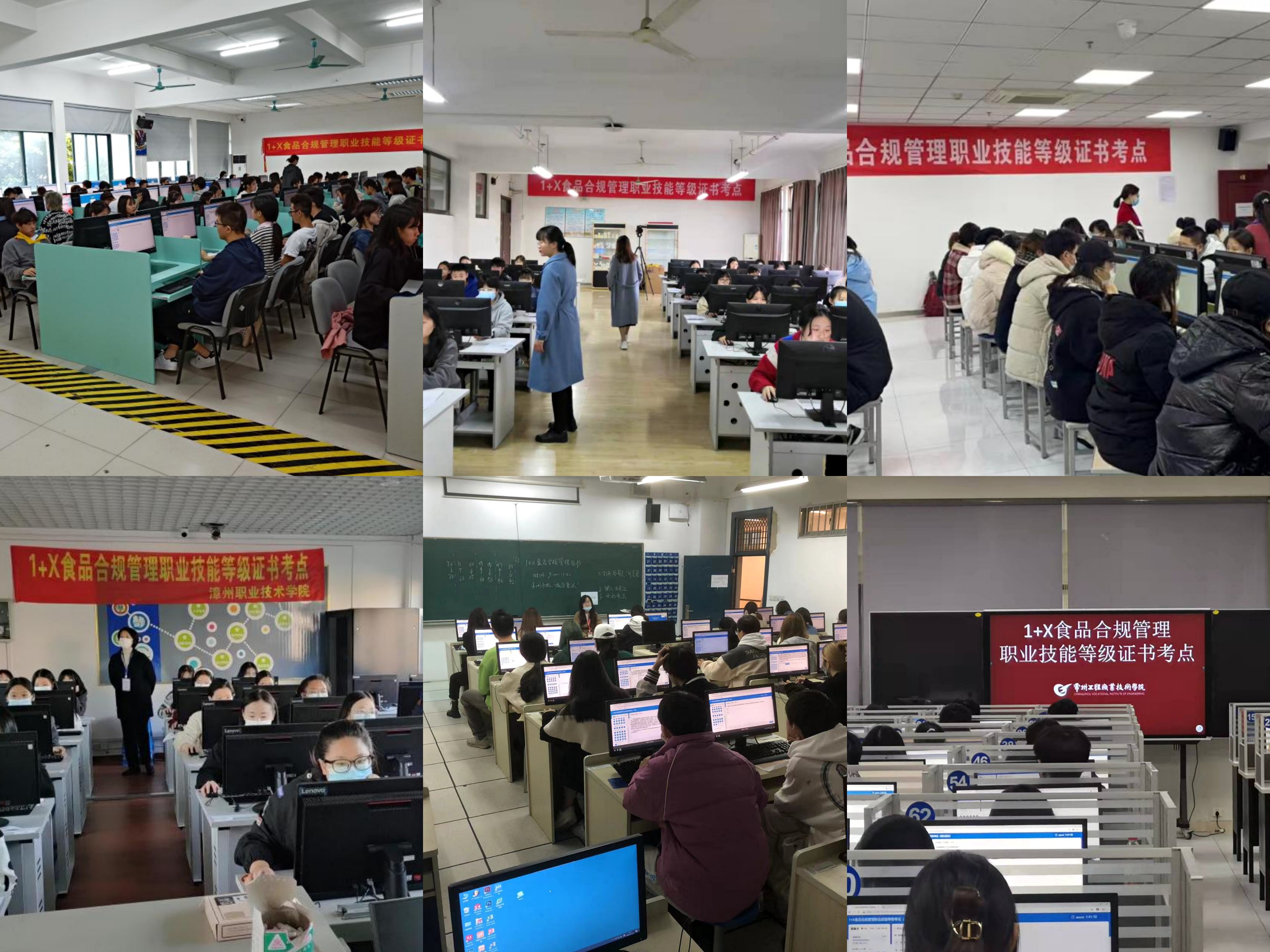 食品合规管理职业技能等级证书初级和中级考核采用电脑机考(理论+实操)的形式,高级考核采用电脑机考(理论+实操)和面试答辩(实操)的形式,整个考试过程中全程录像,考生们严格遵守考生守则,展现了当代高校学生良好形象和职业素养。
