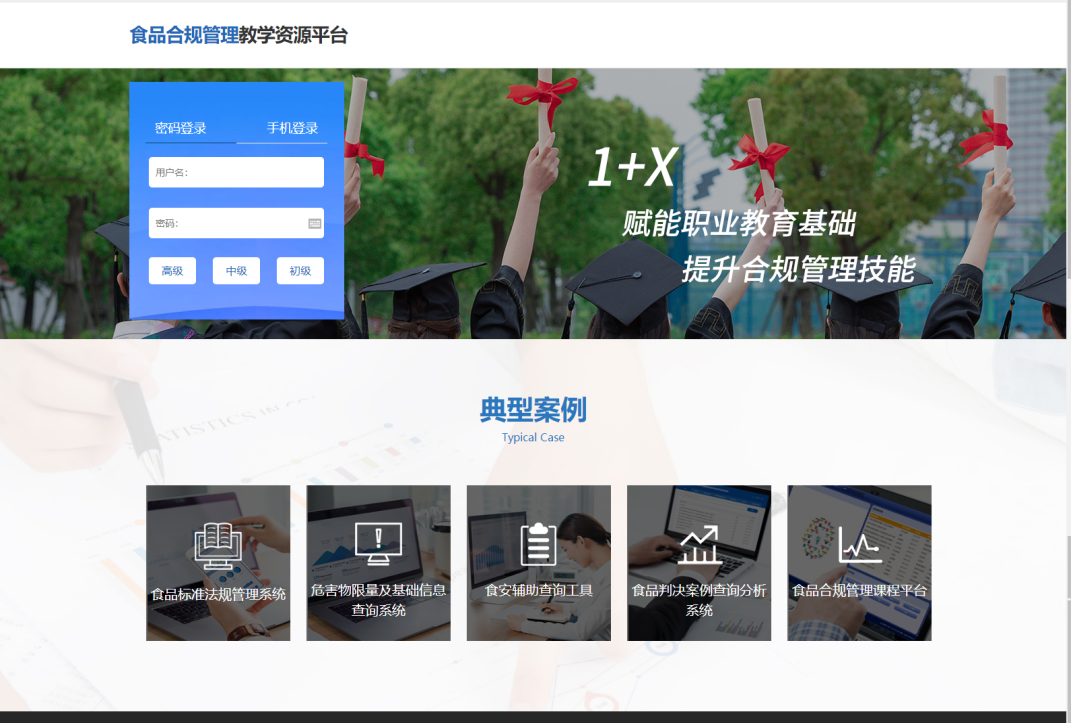 为了配套证书培训考核,我司专门开发了食品合规管理教学资源平台和1+X食品合规管理职业技能等级考试系统。