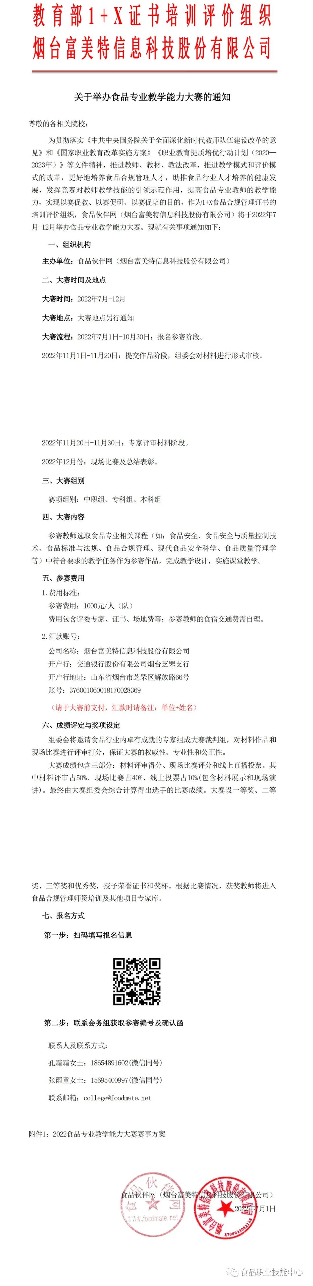 【大赛通知】关于举办食品专业教学能力大赛的通知
