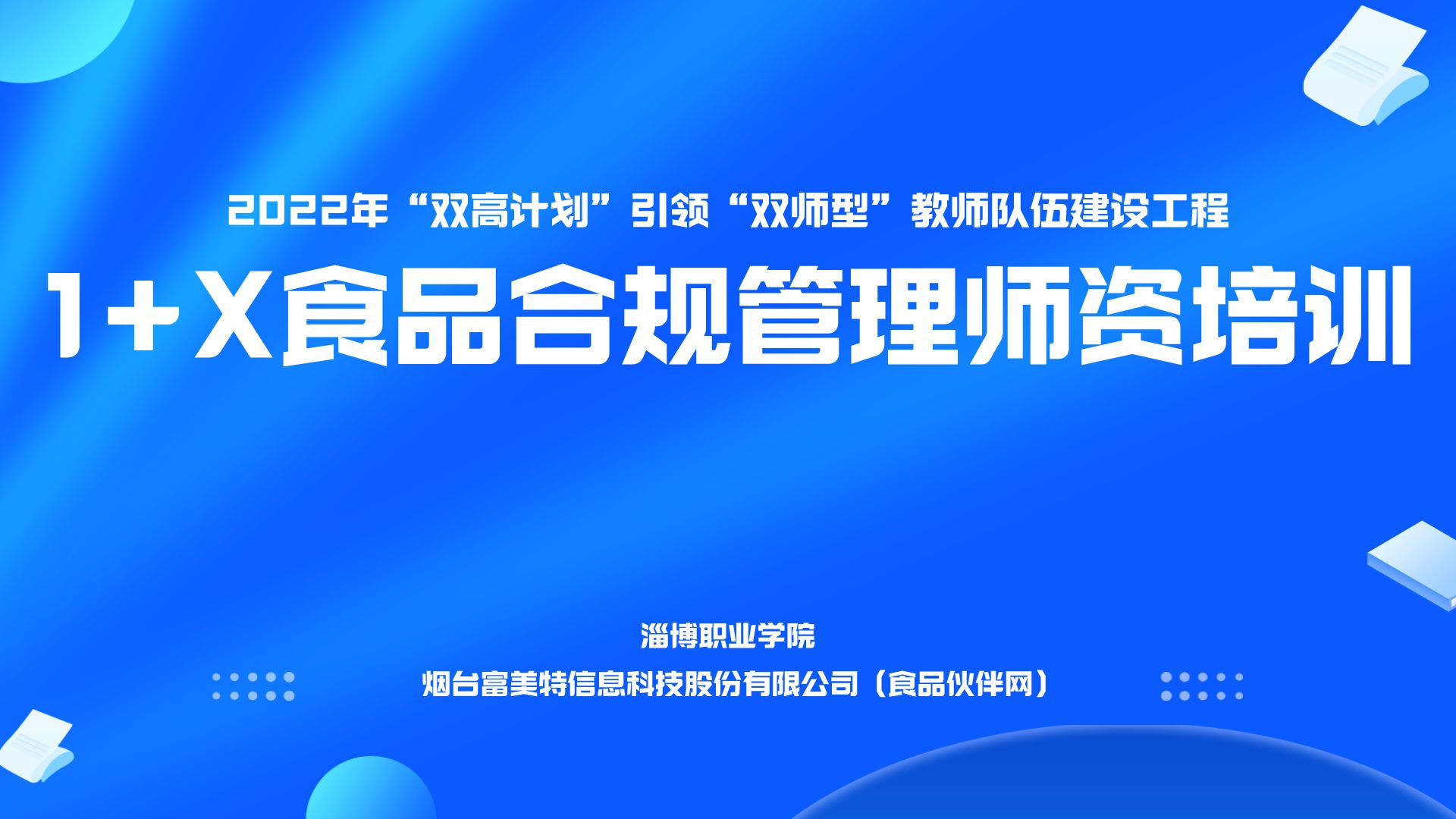 为贯彻落实教育部等四部门《深化新时代职业教育“双师型”教师队伍建设改革实施方案》,自2021年起山东省教育厅实施了“双高计划”引领“双师型”教师队伍建设工程,这项工程是我省职业院校教师素质提升计划的重要改革创新项目,1+X食品合规管理证书师资培训项目是其中的一个子项目。淄博职业学院和食品伙伴网高度重视,精心组织,校企协同顺利完成本次培训。
