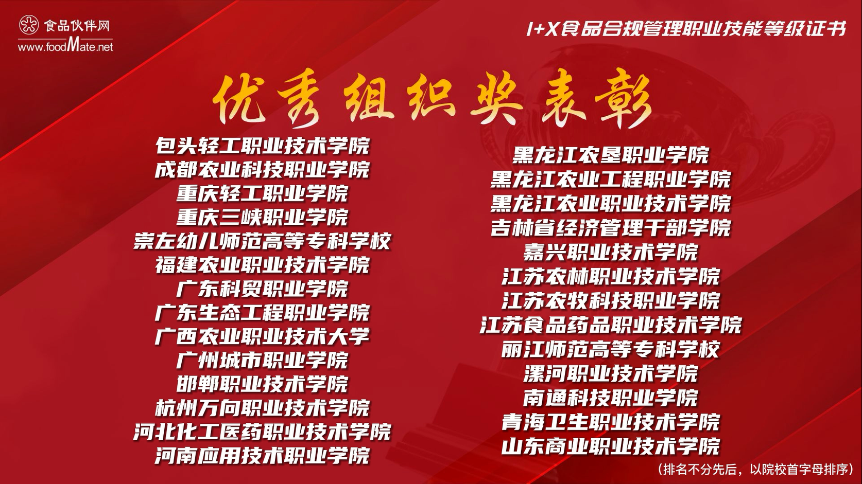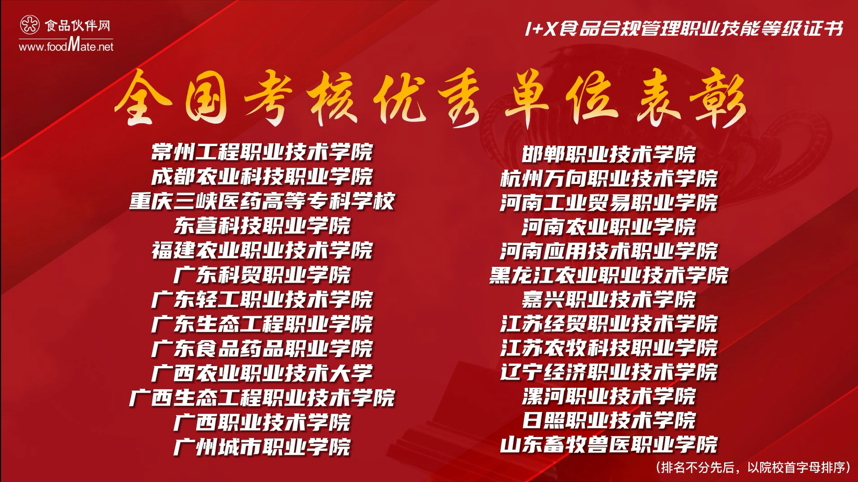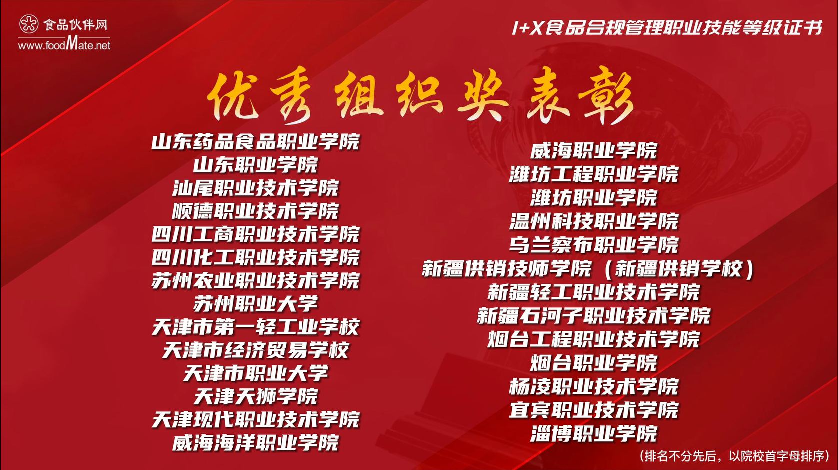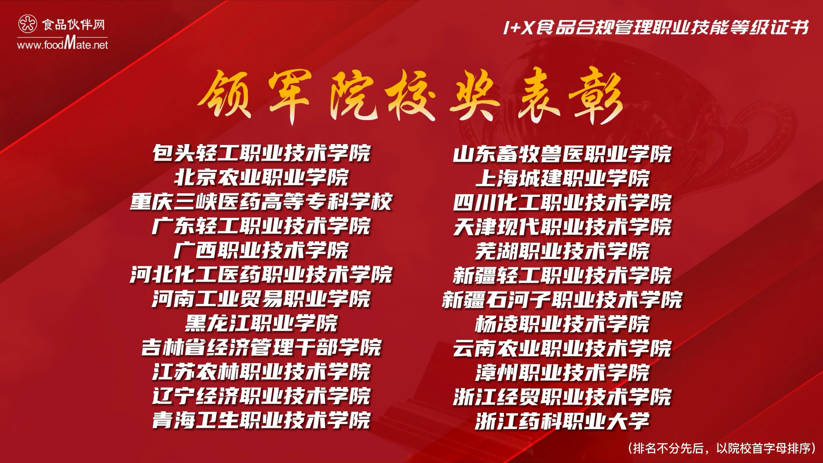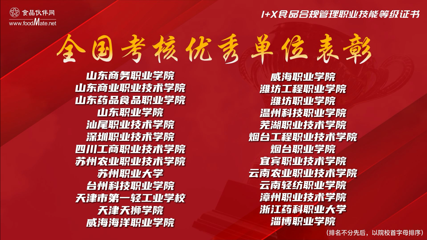 为了让更多院??梢曰ハ嘟涣餮啊⒎窒碛判阍盒>?,食品伙伴网特别邀请了浙江药科职业大学、芜湖职业技术学院、浙江经贸职业技术学院、广东轻工职业技术学院、上海城建职业学院、漳州职业技术学院、山东药品食品职业学院、淄博职业学院、潍坊职业学院、呼和浩特职业学院、宜春职业技术学院、北京农业职业学院和新疆石河子职业技术学院13所院校作为优秀院?;窠贝碜鲋魈夥⒀院途榉窒?。也邀请了来自天津天狮学院和江苏农林职业技术学院的2位学生代表分享了证书的备考心得和证书在实习工作中的作用。