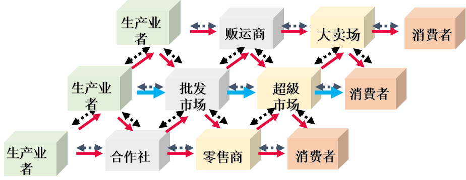 食品供应链是一个复杂的网状结构,采用单纯的链状结构不能准确描述食品供应链,但是本质上仍然是企业(主体)对产品(客体)不断单向作用的一个系统。