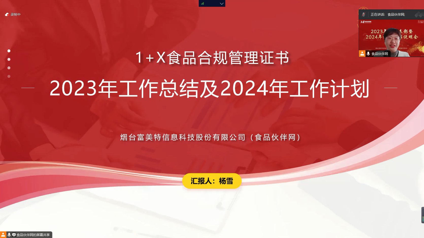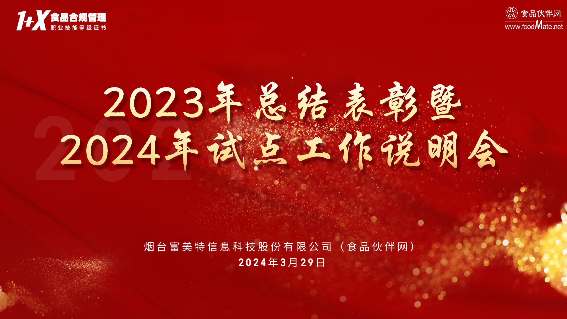 2024年3月29日,烟台富美特信息科技股份有限公司(食品伙伴网)举办的1+X食品合规管理职业技能等级证书2023年总结表彰会暨2024年试点工作说明会在食品伙伴网食学宝平台顺利召开,来自全国各地的院校教师、学生代表及行业专家在线参与交流。