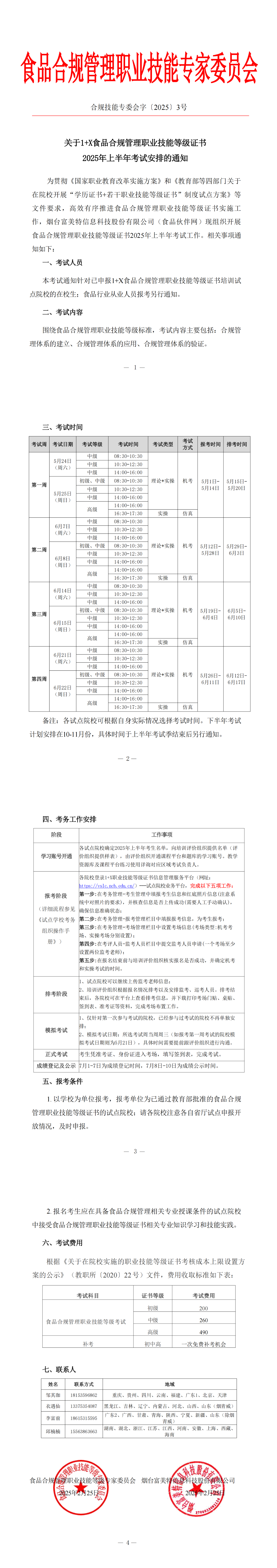【考试通知】关于1+X食品合规管理职业技能等级证书2025年上半年考试安排的通知