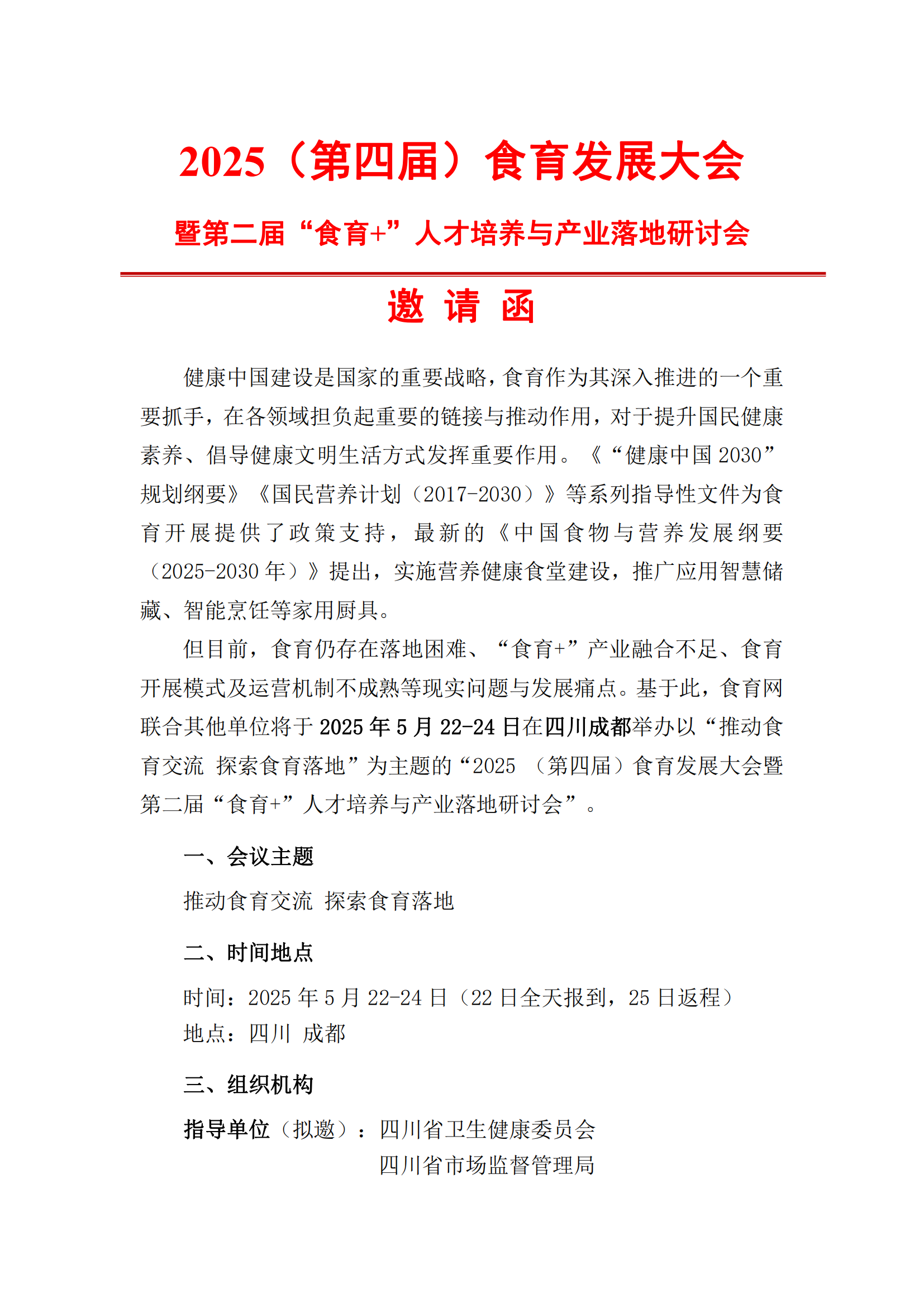 附件:2025(第四届)食育发展大会暨第二届“食育+”人才培养与产业落地研讨会邀请函http://m.qzjfjb.cn/uploads/20250326/6ff6d472f55511b9fad880d18e4201dd.pdf