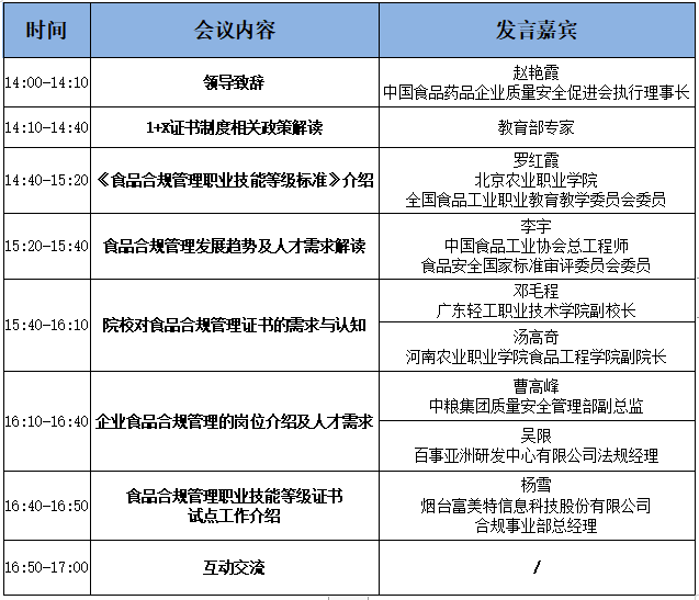 本次说明会将围绕1+X相关政策背景、食品合规管理职业技能等级标准介绍、行业发展趋势及人才需求、培训考核评价工作介绍等??檎箍?,共同为本次食品合规管理职业技能等级评价工作的顺利开展做好准备。