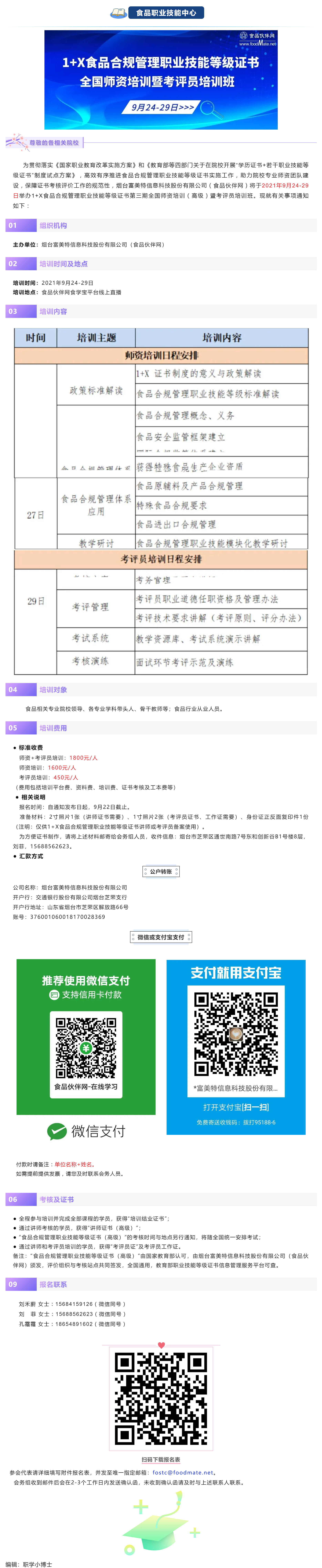 关于举办1+X食品合规管理职业技能等级证书 第三期全国师资培训(高级)暨考评员培训班的通知